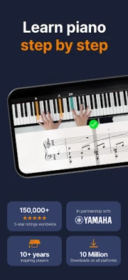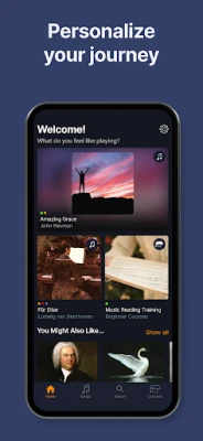 يُسهل flowkey رحلتك التعليمية بدروس تفاعلية ومسارات تدريبية مصممة بعناية. للمبتدئين، هناك دورات واضحة لتعلم قراءة النوتات الموسيقية، التعرف على لوحة المفاتيح، وإتقان العزف باليدين معًا. أما العازفون المتمرسون، فيمكنهم الغوص في دروس متعمقة حول المقامات، التآلفات، وفن الارتجال، مما يوسع آفاقهم الموسيقية. ومع ميزات مثل "وضع الانتظار" الذي يواكب عزفك ويوفر ردود فعل فورية، وخاصية التدرب على كل يد بشكل منفصل، بالإضافة إلى مقاطع الفيديو الاحترافية التي توضح وضع الأصابع الصحيح، يضمن flowkey تجربة تعليمية سلسة وممتعة. يعمل التطبيق بانسجام مع البيانو الصوتي والرقمي ولوحات المفاتيح الموسيقية، ليحول جهازك إلى معلمك الموسيقي الشخصي.