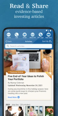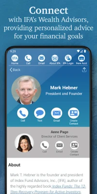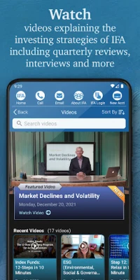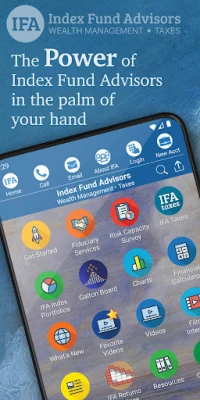 يُقدّم لكم تطبيق IFA الرفيق الأمثل لرحلتكم المالية، حيث يُسهّل عليكم بناء مستقبلكم الاستثماري بثقة ووعي. يضع هذا التطبيق بين أيديكم جسرًا مباشرًا للتواصل مع مستشاري الثروة لدى Index Fund Advisors، سواء عبر الهاتف أو البريد الإلكتروني، لتلقي استشارات شخصية تتناسب تمامًا مع أهدافكم المالية وطموحاتكم الاستثمارية. استكشفوا نهجًا استثماريًا قائمًا على الأدلة، مصممًا لتبسيط تعقيدات السوق وتمكينكم من اتخاذ قرارات حكيمة ومستنيرة.