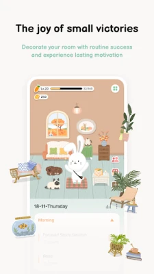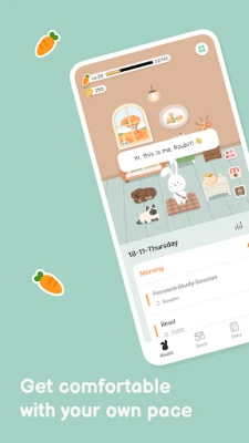 لكي تبقى متحفزًا ومستمتعًا، يقدم لك Roubit تجربة فريدة من نوعها مع شخصية "روبيت" الظريفة التي تنمو معك. في كل مرة تكمل فيها روتينًا معينًا، ستشاهد روبيت الخاص بك ينمو ويكبر، وستكسب مكافآت قيمة على شكل "جزر". هل فكرت يومًا في تزيين غرفة روبيت؟ يمكنك استخدام هذا الجزر لإضفاء لمسة شخصية على مساحة صديقك الافتراضي، مما يضيف بعدًا إبداعيًا ومرحًا لرحلتك في بناء العادات.