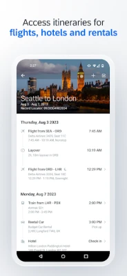 بالإضافة إلى إدارة المصاريف، يرتقي SAP Concur بتخطيط سفرك. قم بتأمين رحلتك الجوية أو رحلة القطار القادمة دون عناء، احجز إقامات فندقية مريحة، أو رتب سيارة للإيجار – كل ذلك ضمن واجهة موحدة. يقترح التطبيق بذكاء فنادق مصممة خصيصاً لتفضيلاتك، مما يجعل كل رحلة عمل تبدو شخصية. هل تحتاج إلى تحديث دعوة اجتماع أو إضافة مشاركين جدد بسرعة؟ يتولى SAP Concur ذلك بسلاسة. بالإضافة إلى ذلك، لتجربة سفر متكاملة حقاً، يمكن لخطط سفرك المزامنة مع TripIt، لتقديم تنبيهات وتحديثات حيوية في الوقت الفعلي مباشرة إليك، مما يبقيك على اطلاع ومتقدماً على جدولك. حتى عدد الأميال التي تقطعها يتم تسجيلها وتتبعها تلقائياً، مما يضيف طبقة أخرى من الراحة.