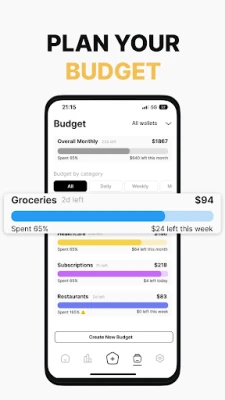 لتحقيق طموحاتك المالية، يمكّنك Soldi من بناء ميزانيات مخصصة تتناسب تمامًا مع أسلوب حياتك وأهدافك. سواء كنت تخطط على أساس يومي، أسبوعي، شهري، أو حتى سنوي، ستعرف دائمًا المبلغ المتبقي لديك للإنفاق، مما يعزز التزامك ويساعدك على البقاء ضمن حدودك المحددة. حافظ على ترتيب أموالك بفعالية باستخدام فئات وفئات فرعية قابلة للتخصيص بالكامل؛ قسّم معاملاتك إلى أقسام مفصلة مثل البقالة، الفواتير، والترفيه، لتجعل Soldi أداة شخصية تتكيف مع احتياجاتك الفريدة. بالإضافة إلى ذلك، يمكنك إدارة محافظ متعددة وتنظيم التحويلات بينها بسلاسة تامة.