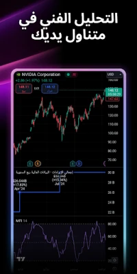 ينفرد TradingView بتقديم رسوم بيانية متقدمة تفوق بقدراتها معظم المنصات التقليدية، وهي متاحة بالكامل على جهازك المحمول دون أي تضحية بالميزات. استعرض السوق من خلال أكثر من 10 أنواع من الرسوم البيانية الفريدة، بما في ذلك الرسوم البيانية الخطية، ورسوم Renko وKagi التي تركز على حركة الأسعار. استفد من مجموعة واسعة من أدوات التحليل الفني، مثل المؤشرات المتطورة، الاستراتيجيات المخصصة، وأدوات الرسم مثل موجات إليوت ومتوسطات الحركة، لتكوين رؤى عميقة واتخاذ قرارات مستنيرة.